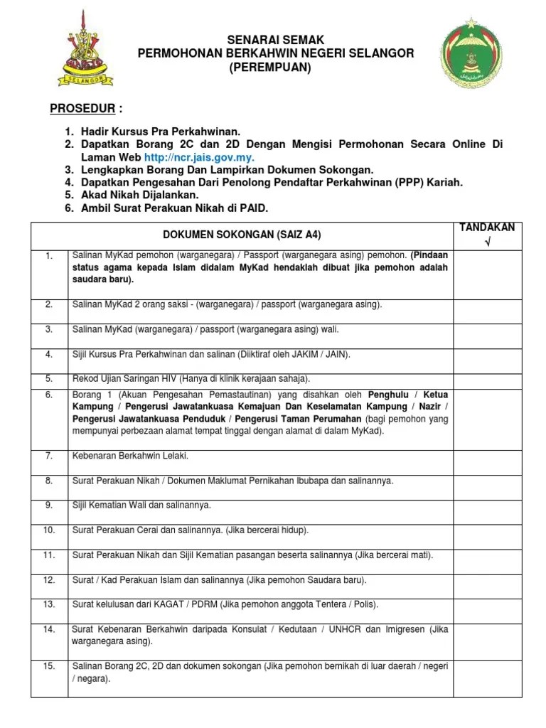 Surat Perakuan Nikah Selangor : Cara Isi Borang Nikah Selangor Kumpulan Cara. 06.10.2019 · surat nikah ibubapa bagi pemohon yang masih mempunyai ayah yang berkemampuan untuk menjadi wali, ini adalah sangat penting untuk dikemukakan bagi tujuan pengesahan taraf wali. Sila rujuk carta alir ringkas peralihan dari sistem ncr online ke sppim. Surat perakuan nikah boleh diambil di pejabat agama islam daerah. Ahli perlu kemukakan bukti pertalian suami/isteri iaitu surat nikah/sijil perkahwinan atau sijil kelahiran anak; Borang yang telah lengkap beserta … Salinan perintah mahkamah tentang hak penjagaan, jika ibu bapa bercerai/berpisah (jika berkenaan) surat daftar anak angkat mengikut seksyen 25 akta pengangkatan 1952 (jika anak angkat) senarai semak murid berpindah kolej/sekolah; Borang kwsp 9c (ahl) (d8) dan senarai semak dokumen; (*) potong yang tidak berkenaan *rm40 (warganegara) / rm80.00 (bukan warganegara)